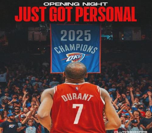 火箭揭幕战对手为新科总冠军得主雷霆,杜兰特新东家的首秀便要面对自己的老东家,噱头绝对拉满,不得不感叹NBA真会安排赛程,丝毫不藏着掖着就是奔着流量而去。