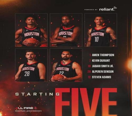火箭主帅乌度卡透露了球队揭幕战的首发五虎,分别为阿门(2米01)+杜兰特(2米11)+小史密斯(2米11)+申京(2米11)+亚当斯(2米11),平均身高2米09。