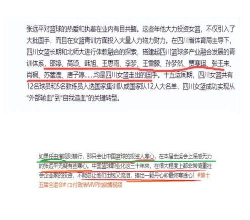 有意思的是,随着四川队无缘冠军,CBA名记付政浩,却站出来为四川队打抱不平,他表示四川队无缘冠军,是有一些事情超出了比赛范畴,超出了球队能够掌控的范围,在这样的情况下,让坚持对女篮投资的张远平感到有一些失望,有一些寒心!因为,对于一些比赛,一些现象,让他感到无力!