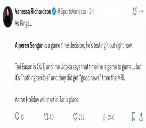 北京时间1月12日,火箭以98-111不敌国王遭遇三连败。这场比赛后火箭跌至西部第七,而太阳升至西部第六,申京提前了4-8天复出也难阻火箭的颓势。此役后太阳/火箭关于杜兰特的交易谁输谁赢就很难鉴定了,因为上赛季火箭西部第二,交易得到杜兰特后太阳战绩提升,而火箭战绩不升反降。